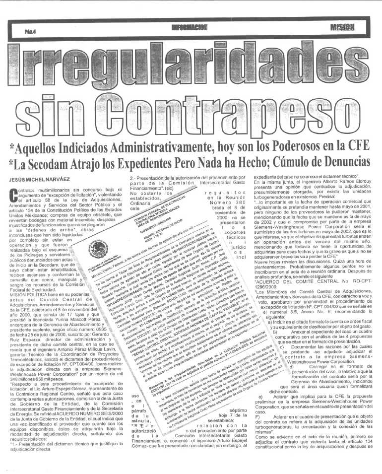Publicación del día 13 de febrero de 2001 en el Periódico El Sol de México