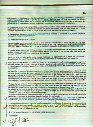 Todos estos incumplimientos, además a los referentes a la entrega extemporánea de algunos de los equipos y servicios materia del contrato base de la acción, evidentemente generaron la aplicación de las penas convencionales acordadas en la nota 1 del mismo, por lo tantoi la pretención de la contraria es injustificada e improcedente.