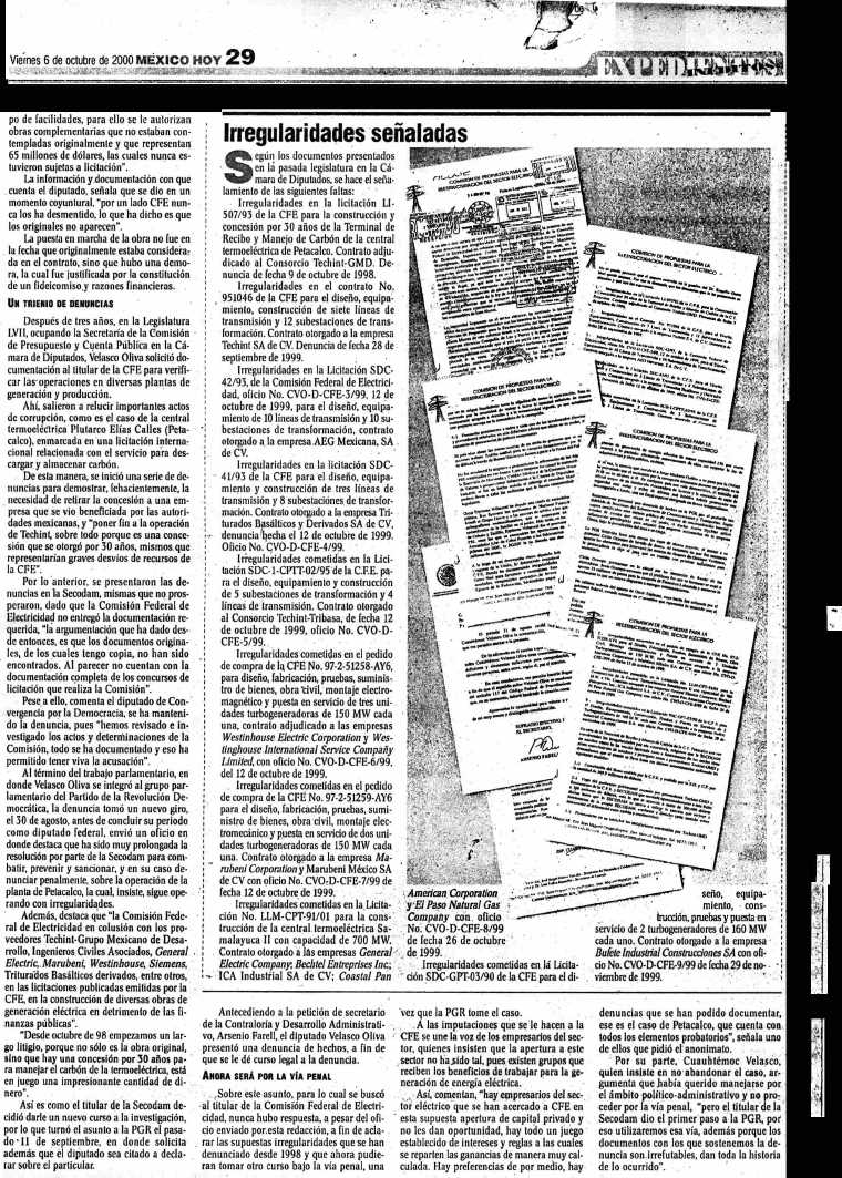 Publicación del día 6 de octubre de 2000 en el Periódico MEXICO HOY