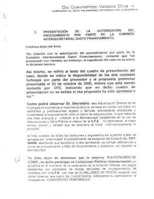 Así mismo, se refirió al texto del cuadro de presentación del caso, donde se indica la disponibilidad de las dos unidades turbogas por parte del proveedor y la propuesta prelimlnar presentada el 23 de octubre de 2000, misma que esta siendo revisada por CFE, indicando que en dicho cuadro de presentación no se señala si esa propuesta ha sido aprobada o no."