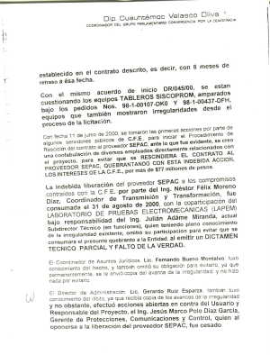 Con fecha 11 de iunio de 2000, se tomaron las pnmeras acciones por parte de algunos servidores públicos de C.F.E., para iniciar el procedimiento de Rescición del contrato al Proveedor SEPAC, ante lo que fue evidente, se creo una confabulación de diversos empleados directamente relacionados con el proyecto, para evitar que se RESCINDIERA EL CONTRATO AL PROVEEDOR SEPAC, QUEBRANTANDO CON ESTA INDEBIDA ACCION, LOS INTERESES DE LA C.F.E., por más de $77 millones de pesos.