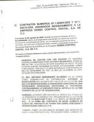Con fecha 15 de agosto de 2000, también se emitió el Acuerdo de Inicio No. DR/044/00, sobre un procedimiento disciplinario en contra de diversos funcionarios y empleados de C.F.E., por la indebida asignación de estos contratos, así como por el consentimiento, omisión y complacencia de éstos Servidores Públicos de la C.F.E. con el Proveedor SENSA CONTROL DIGITAL, S.A. DE C.V.