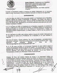 I.- El 9 de marzo de 2004, el hoy recurrente solicitó, a la Presidencia de la República, mediante solicitud de acceso a información, lo siguiente: "Con fecha 8 de marzo de 2004 presenté solicitud de información. Número de Folio 0210000012304. Me informan que no les resulta clara. Agradececé se me permita explicarlo personalmente ante quien ustedes me indiquen. Gracias."