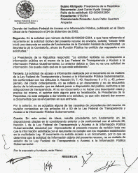 La Presidencia de la República respondió: "La solicitud recibida no corresponde a información pública en el marco de la Ley Federal de Transparencia y Acceso a la Información Pública Gubernamental. Lo anterior debido a: que no es una solicitud de información. No queda claro qué es lo que está solicitando."