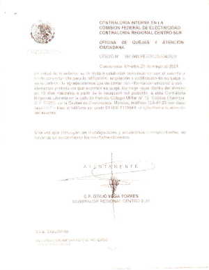 En virtud de lo anterior, se le invita a establecer comunicación con el suscrito a fin de concertar cita para la ratificación, ampliación o rectificación de su queja, o en su defecto, le agradeceremos que de contar con información adicional o con elementos probatorios que soporten su queja, los haga llegar dentro del término de 10 días naturales a partir de la recepción del presente, a esta Contraloría Regional, ubicada en la calle de Heroico Colegio Militar No. 15, Col. Chamilpa, C.P. 62210, de la Ciudad de Cuernavaca, Morelos, teléfono 329-40-22 con clave lada 01-7 o bien al teléfono sin costo 01-800-7119644, dirigiéndola a la atención del suscrito.