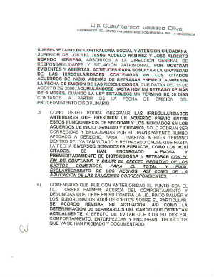 4) COMENTADO QUE FUE CON ANTERIORIDAD EL PUNTO CON EL LIC. TORRES PALMER, ACERCA DEL COMPORTAMIENTO Y DENUNCIAS QUE TIENE EN SU CONTRA LA LIC. PINTO PALMER Y LOS SUBORDINADOS AQUÍ DESCRITOS SOBRE EL PARTICULAR, SE ACORDÓ REVISAR SU ACTUACIÓN, ASÍ COMO LA DETERMINACIÓN DE SEPARARLOS DEL CARGO QUE OSTENTAN ACTUALMENTE, A EFECTO DE EVITAR QUE CON SU DESLEAL COMPORTAMIENTO, ENTORPEZCAN Y ENCUBRAN LOS ILÍCITOS QUE YA SE HAN PROBADO Y DOCUMENTADO.