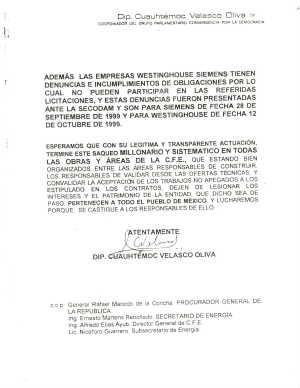 ADEMÁS LAS EMPRESAS WESTINGHOUSE SIEMENS TIENEN DENUNCIAS E INCUMPLIMIENTOS DE OBLIGACIONES POR LO CUAL NO PUEDEN PARTICIPAR EN LAS REFERIDAS LICITACIQNES,Y ESTAS DENUNCIAS FUERON PRESENTADAS ANTE LA SECODAM Y SON PARA SIEMENS DE FECHA 28 DE SEPTIEMBRE DE 1999 Y PARA WESTINGHOUSE DE FECHA 12 DE OCTUBRE DE 1999.
