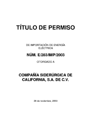 Este permiso autoriza a Compañía Siderúrgica de California, S.A. de C.V., en lo sucesivo y para los efectos del permiso denominada la permisionaria, a importar energía eléctrica de acuerdo con los derechos y las obligaciones que se derivan de las siguientes: