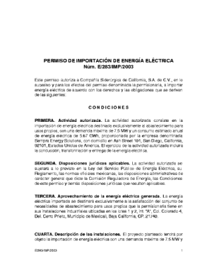 PERMISO DE IMPORTACIÓN DE ENERGÍA