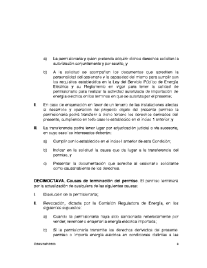 b) Si la permisionaria transmite los derechos derivados del presente permiso o importa energía eléctrica en condiciones distintas a las E/283/IMP/2003 6