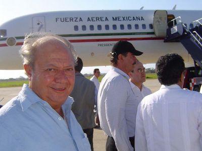 El líder del sindicato petrolero, Carlos Romero Deschamps, acompañó al presidente Vicente Fox a una gira por el estado de Veracruz Foto Andrés Carreón López