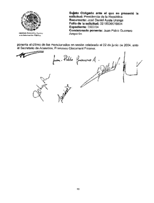 de junio de 2004, ante el Secretario de Acuerdos, Francisco